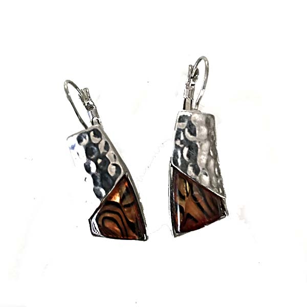 Selve øreringen er 3 cm lang og 2,3 cm, Brun pynt samt sølvfarvet metal. Købt i Paris